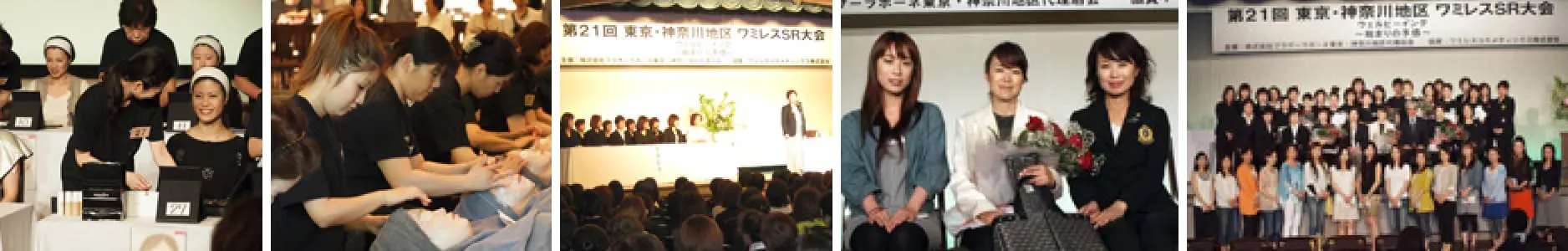 “SR”スキンリフレッシャーは「古いものを取り除き、新しい肌の再生を促す」ことを目的としたワミレス独自の美顔サービスです。 SR大会は高い志を持ち、自身を研鑽する中で得た技術を披露する場であり、多くの方と出逢えた事への感謝を、そしてたくさんの仲間とともに"美しく生きる"ことを共有する場として毎年開催されています。