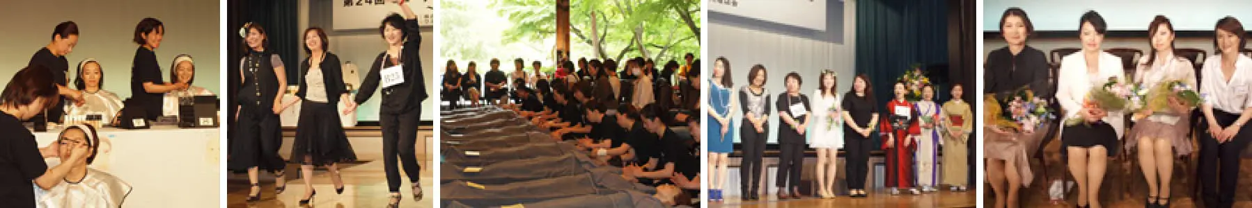 毎年大会が近づくと、サロンでスタッフとお互いに練習をし、代理店に指導を受けながら確認をしています。